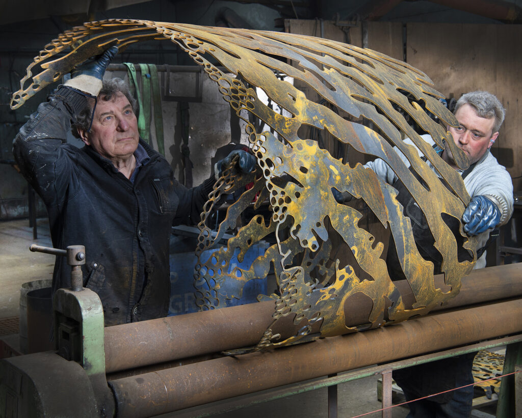 Als decor- en interieurontwerper had hij al geleerd wat samenwerking met professionals kan opleveren en ook nu maakt hij graag gebruik van hun expertise en vaardigheden. De huidige sculpturen worden na de ontwerpfase door de kunstenaar in samenwerking gerealiseerd in lokale staalbedrijven.